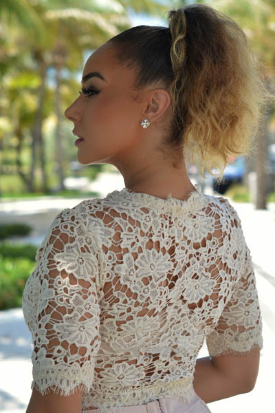 | Maja Beige Floral Eyelet Luxe Crop Top L468-3 |