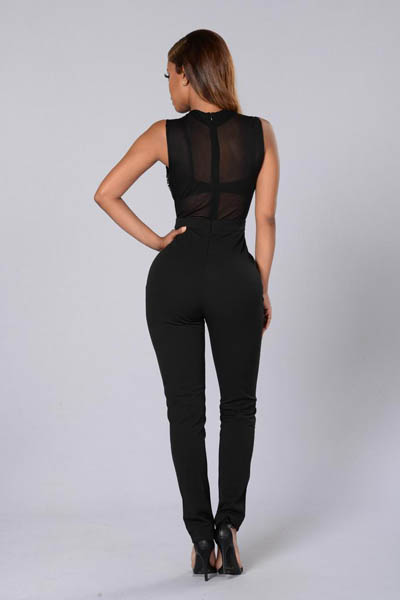 | Rhinestone Sleeveless Black Sexy Jumpsuits L55207 |