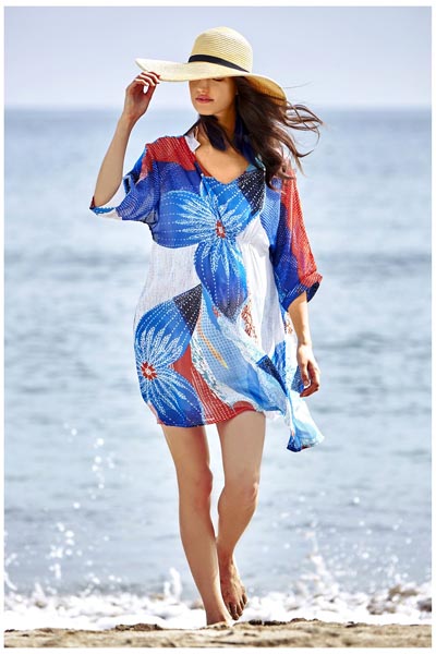 Red, White & Blue Abstract Design Swimsuit Coverup L38367