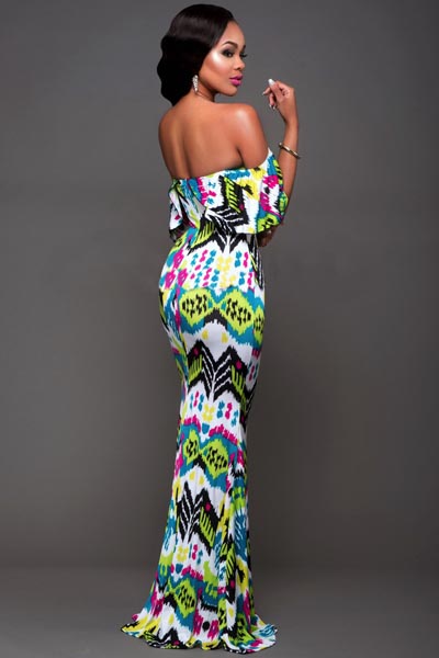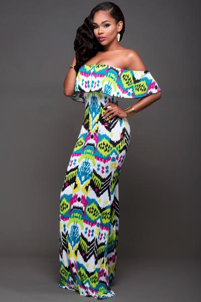 | Ambrosia Lime Multi-Color Off-The-Shoulder Maxi Dress L51333 |