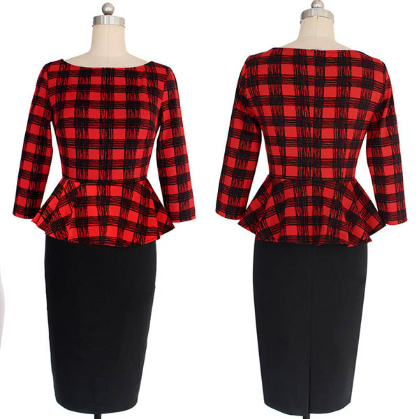 | Womens Peplum Elegant Vintage Tartan Plaid Pencil Dress L36117-1 |