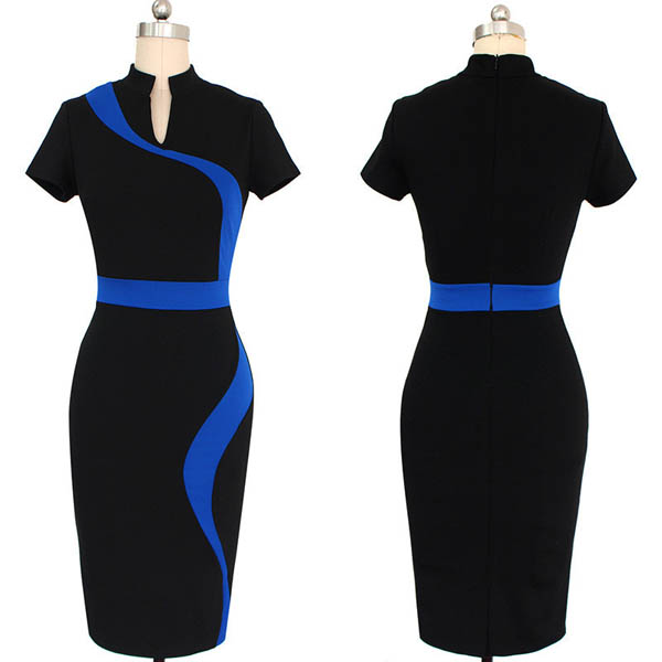 | Womens Contrast Colorblock Office Casual Pencil Dress L36119-3 |