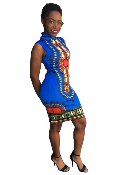 | Ethnic Style Round Neck Sleeveless Totem Printed Mini Dress L28072-3 |