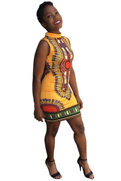 | Ethnic Style Round Neck Sleeveless Totem Printed Mini Dress L28072-5 |