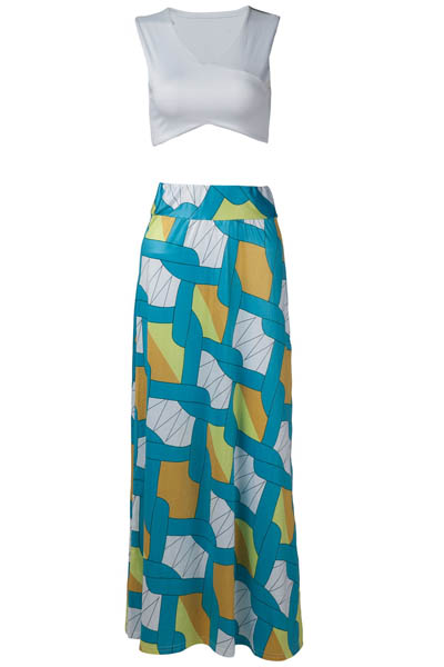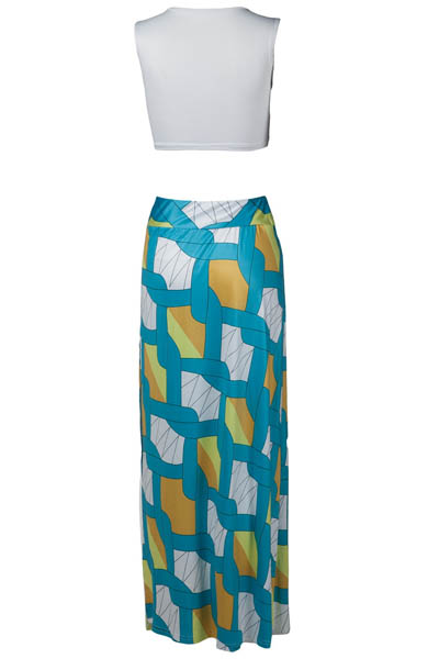 | Women Sleeveless 2 Piece Set Tops + Cut Out Bodycon Maxi Dress L28086 |