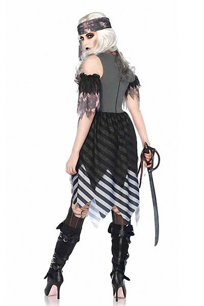 New Ghost Pirate Women Costume Tattered Dress Lace up Arm Puffs Head Wrap L15430