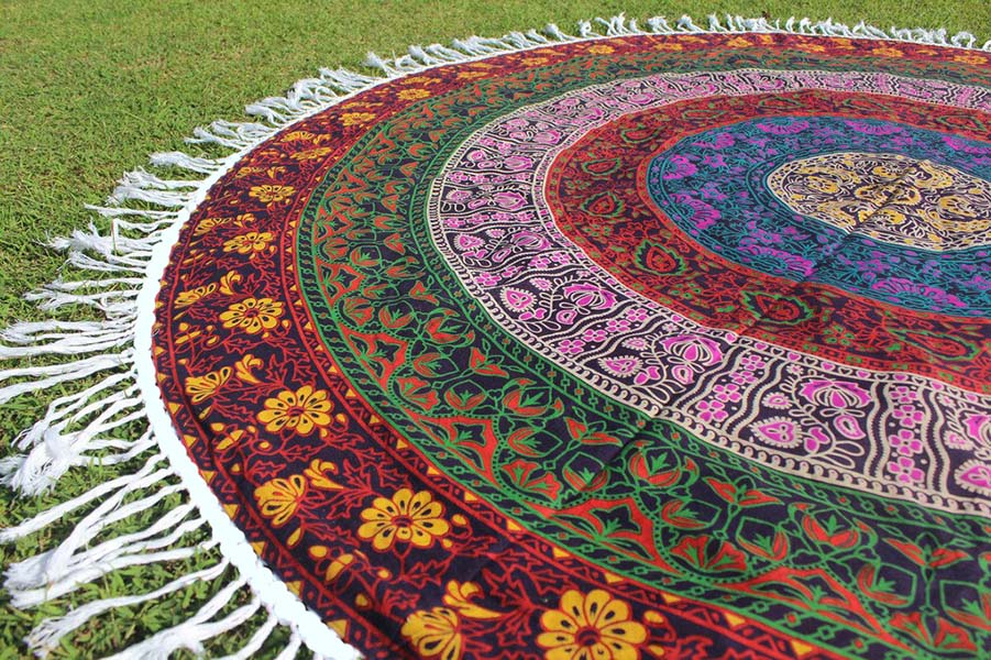 Indian Mandala Six Color Round Hippie Beach Throw Yoga Mat Tassel