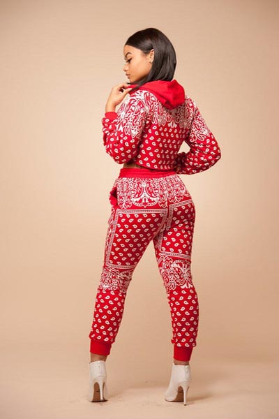 | India Westbrooks Joggers Red Hooded Suits L28098-1 |