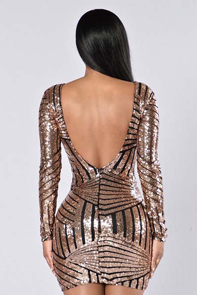 | Long Sleeves Sequins Halter Dress Mini L28099-2 |