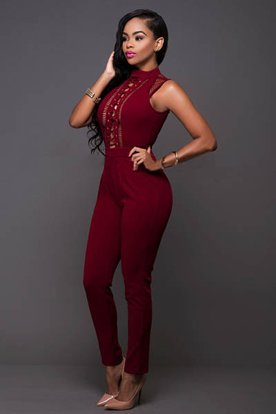 | Women Club Neck Hollow-out Jumpsuit L55223-1 |