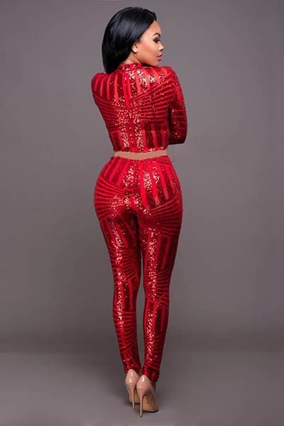| Zipper Back Sequined Long Sleeve Tight 2 Piece Set L28107-1 |