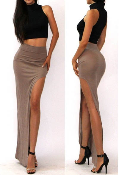Women Hot Sexy High Waist Side Open Leg Slit Split Long Maxi Skirt L396-3
