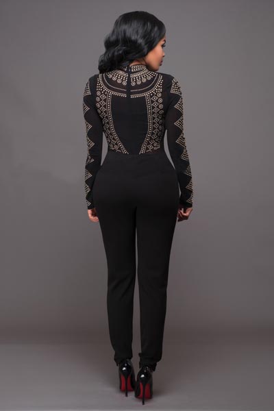 | Galaxy Black Studded Mesh Top Jumpsuit L55231 |