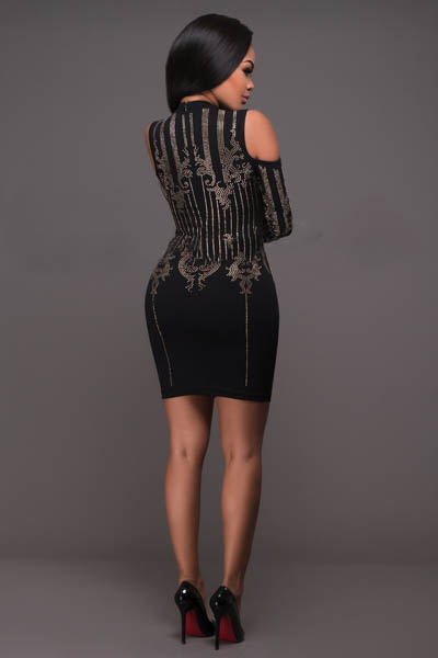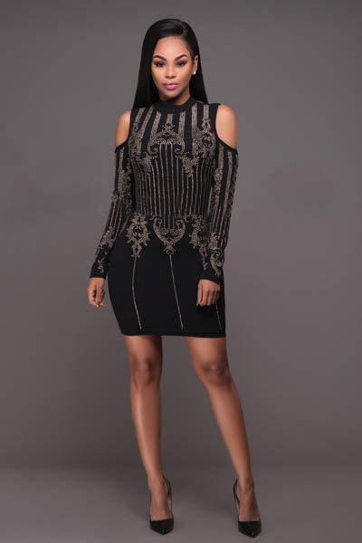 | Pembroke Black Gold Studded Long Sleeves Dress L28120-1 |