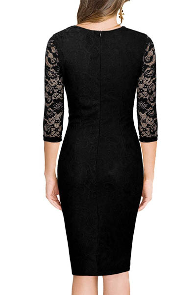 | Women's Front Contrast Lace Pencil Dress L36124-1 |