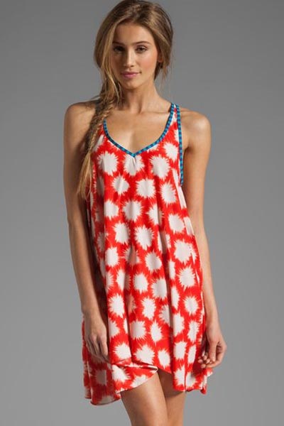 Orange Sparks Print Cover-ups Beach Dress L3778-1