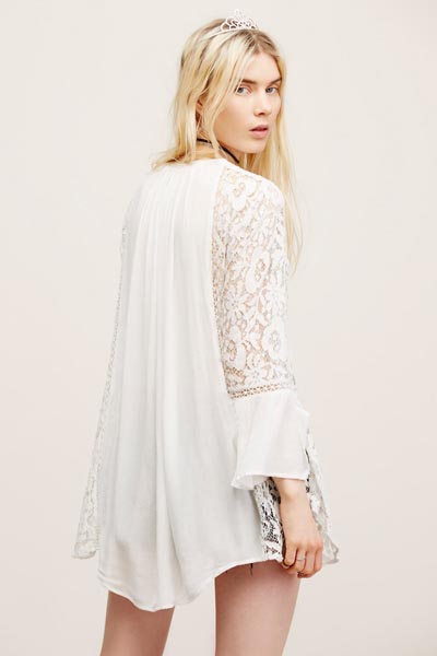 White Lace Sheer Long Sleeve Beach Swimsuit Cover Up L38364