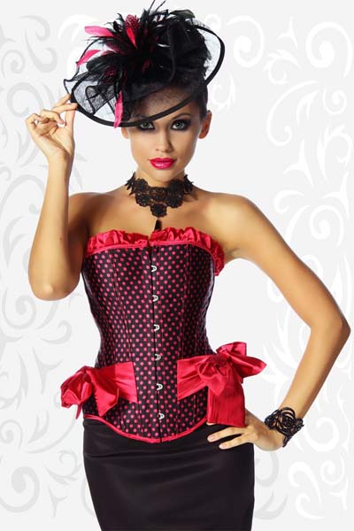 Sexy Red Lace With Black Imitation of Velvet Skin Type corset Top Bustier S-2XL L4082