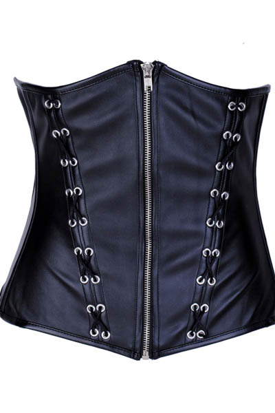 Front Zipper and Back Tie Sexy Leather Outfit Corset L6037
