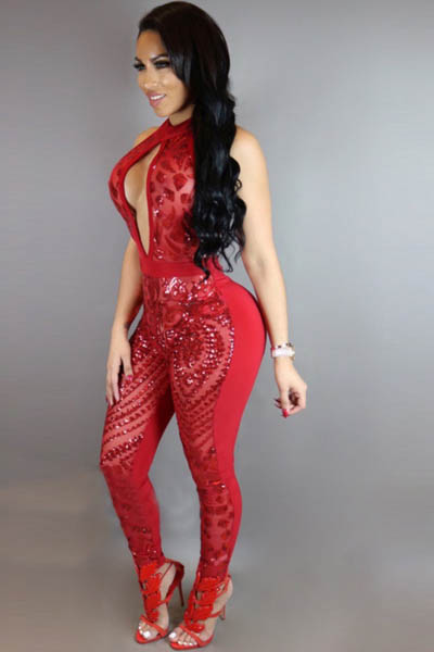 | This hot sequin jumpsuit is a sure head turner! It stretches and fits very true to size. |