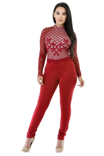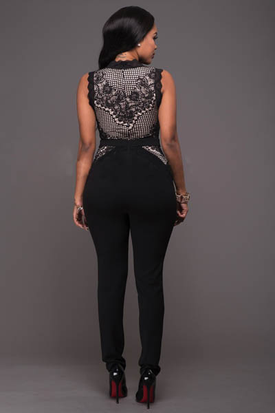 | Chyna Black Nude Lace Accent Jumpsuit L55269 |