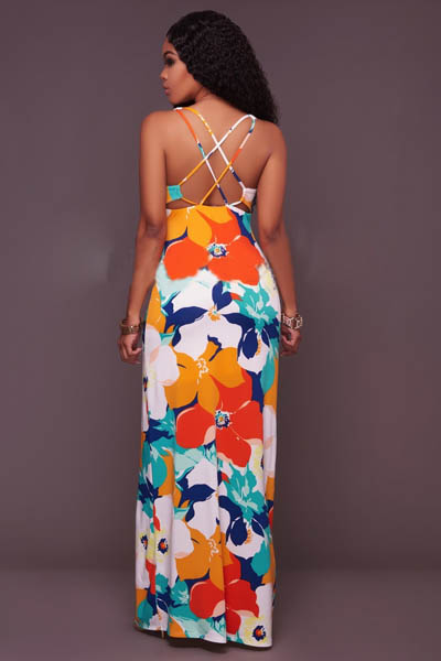 | Betsey Multi-Color Floral Print CrissCross Back Maxi Dress L51367 |