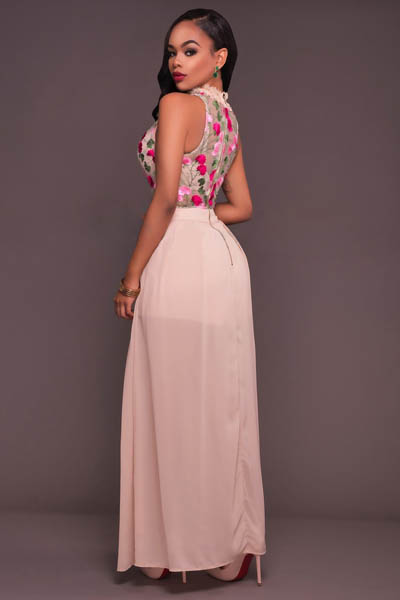 | Sweet Escape Nude Sheer Top Romper Maxi Dress L51369-3 |