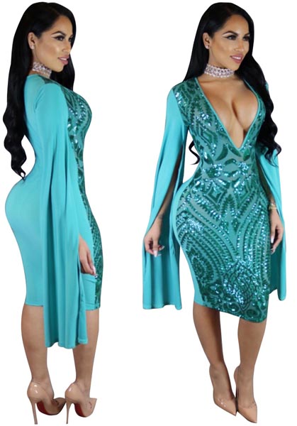 | Stunning sequin dress with knee length open design sleeves. A sure head turner! It stretches and fits great. |