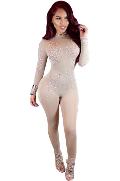 | Look sexy from head to toe in this wet look jumpsuit featuring halter straps, a plunging |
