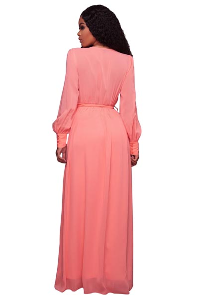 | Karson Soft Coral Belted Maxi Dress L51378-2 |
