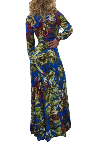 | Plunge Neck Long Sleeve Slit Print Maxi Dress L51381-1 |