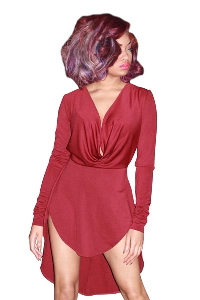 | Sexy Drop V-neck Low High Irregular Short Club Dress L28185-1 |