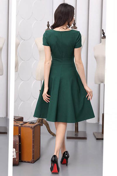 | V-Neck Short Sleeved Fashion Swing Dress L36154-1 |