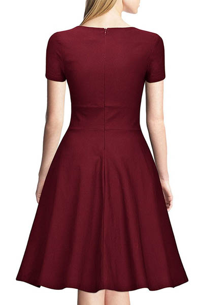 | V-Neck Short Sleeved Fashion Swing Dress L36154-2 |
