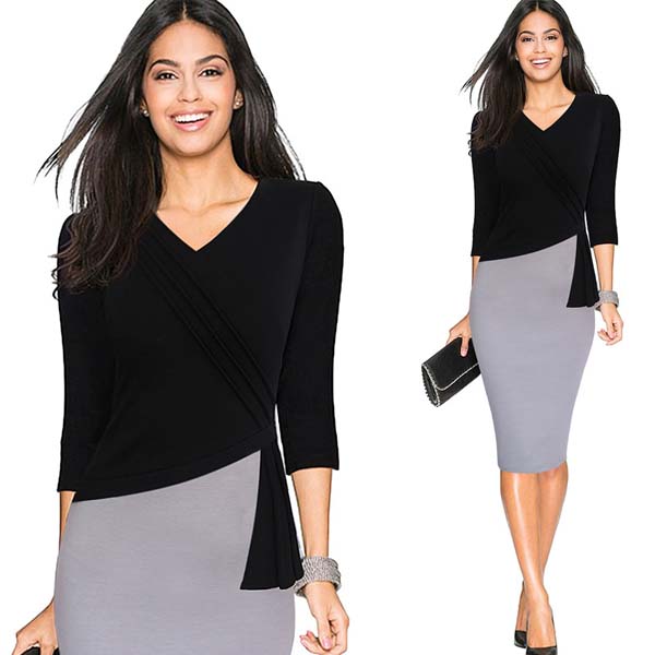| V-neck Office Sheath Fitted Pencil Dress L36156 |
