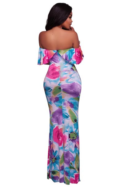 | Paradise Teal Off-The-Shoulder Maxi Dress L51393 |