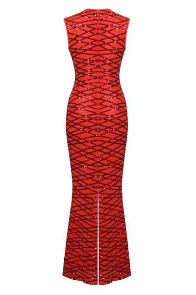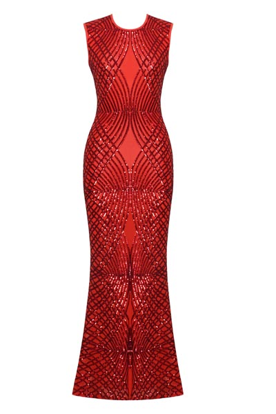 | Orange Backless Sequins Slim Maxi Dress L51394 |