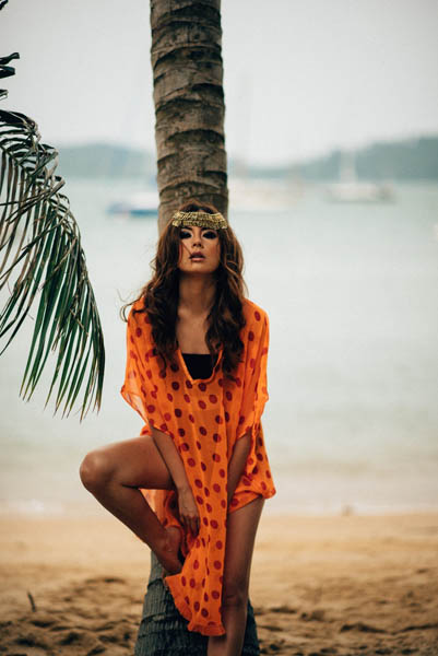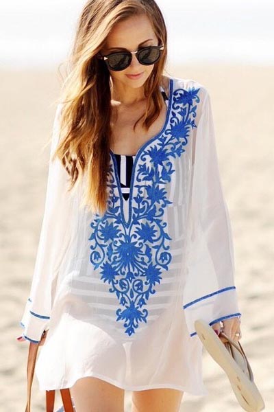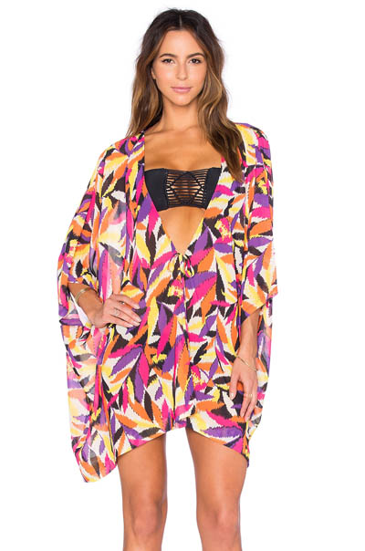 Colorful Leaves Print V Neck Summer Beach Cover-up L38316