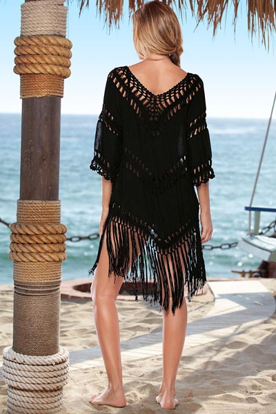 Popular Lace Hollow Out Fringed Maxi Kimono L38284
