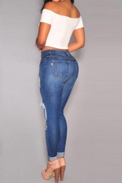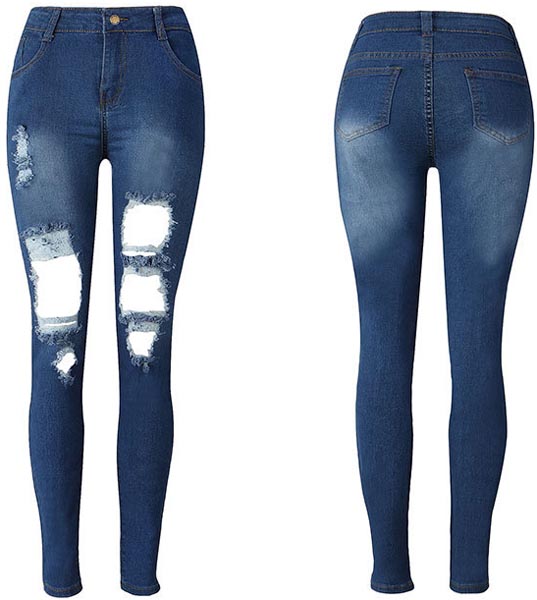 | Washed Denim Ripped Big Holes Lady Jeans L516 |