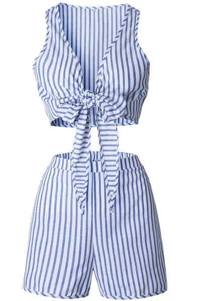 | Striped Bandage Front Fashion Two-Piece Set L28197 |