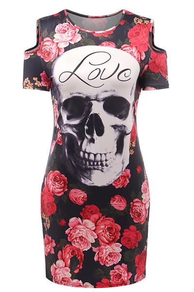 | Print Skull Love Red Flower Floral Dress L28200 |