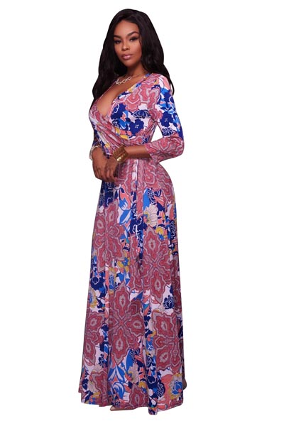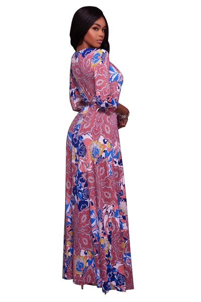 | Pink Floral Print Belted Maxi Dress L51397-2 |