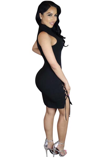 This sexy laced design dress has laced detail along the front. It stretches and accentuates your curves.