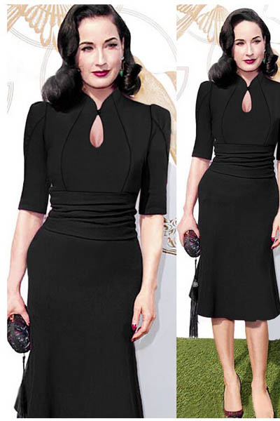 Elegant Retro Pinup Tunic Ruched Evening Party Mermaid Midi Dress L36060-2