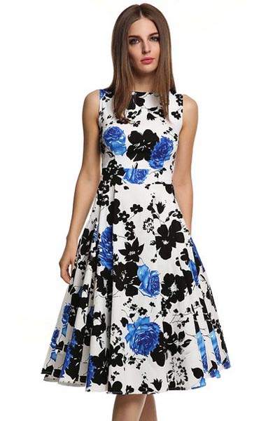 Round Neck Sleeveless Big Swing Dress L36087-3