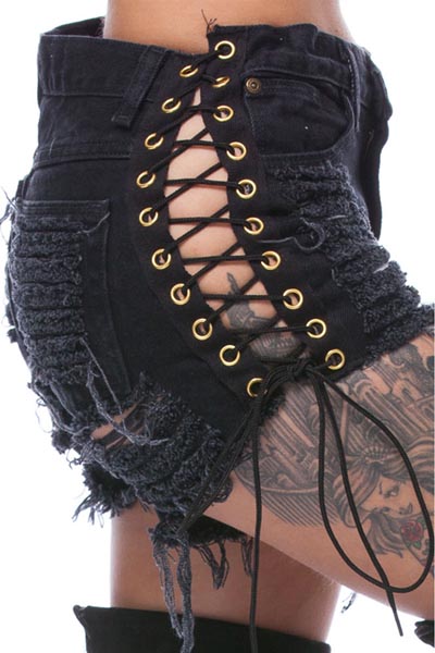 | Side Lace-up Broken Holes Black Shorts L547 |