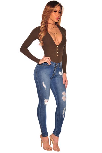 | Denim Ripped Zipper Leg Skinny Jeans L563 |