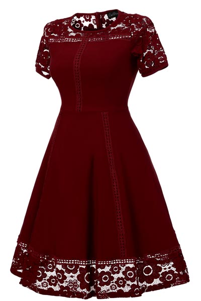 | Sexy Vintage Summer Lace Round Neck Short Sleeve Princess A Line Tea Dress L36173-1 |