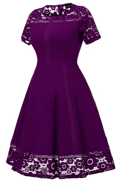| Sexy Vintage Summer Lace Round Neck Short Sleeve Princess A Line Tea Dress L36173-2 |